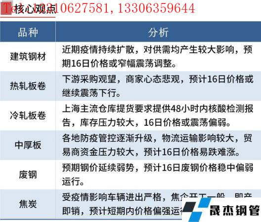 近期,全國疫情呈現(xiàn)局部高度聚集和多點(diǎn)散發(fā)態(tài)勢,多個城市實現(xiàn)封閉管理,建設(shè)工地、物流運(yùn)輸受到影響,鋼市成交量明顯下降。雖然部分地區(qū)無縫厚壁鋼管廠家生產(chǎn)也受到影響,但建筑工地受到的沖擊更大,預(yù)期鋼市供需壓力加大,短期鋼價或震蕩偏弱。