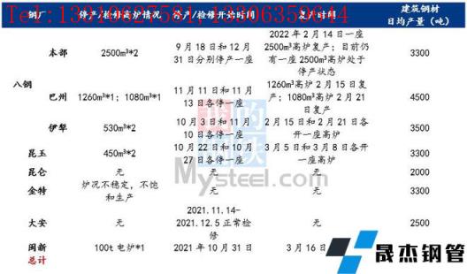 2021年為完成新疆粗鋼產(chǎn)量限產(chǎn)目標和應對冬季市場需求大幅減量的市場環(huán)境,新疆主要建筑厚壁無縫鋼管生產(chǎn)企業(yè)在2021年11月-12月均執(zhí)行不同程度的減限產(chǎn)措施。據(jù)統(tǒng)計,2021年底新疆主要無縫厚壁鋼管廠家中僅八鋼(本部)、昆侖鋼鐵、金特鋼鐵和哈密大安處于在產(chǎn)狀態(tài),各無縫厚壁鋼管廠家日均產(chǎn)量維持在700-2500噸左右,八鋼巴州與伊鋼基地、昆玉鋼鐵和閩新鋼鐵則完全處于停產(chǎn)狀態(tài),停產(chǎn)時間長達3.5-4.5個月。跨入2022年之后,金特鋼鐵產(chǎn)量有所抬升,但由于高爐鐵水產(chǎn)量不穩(wěn)定,日均建筑厚壁無縫鋼管產(chǎn)量在2000-3500噸之間浮動,而其他在產(chǎn)無縫厚壁鋼管廠家受季節(jié)性淡季影響依舊處于不飽和生產(chǎn)狀態(tài)。