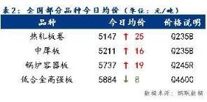 今日全國部分品種均價總體趨強(qiáng),其中低合金高強(qiáng)板均價小幅下跌,跌幅為8元/噸。