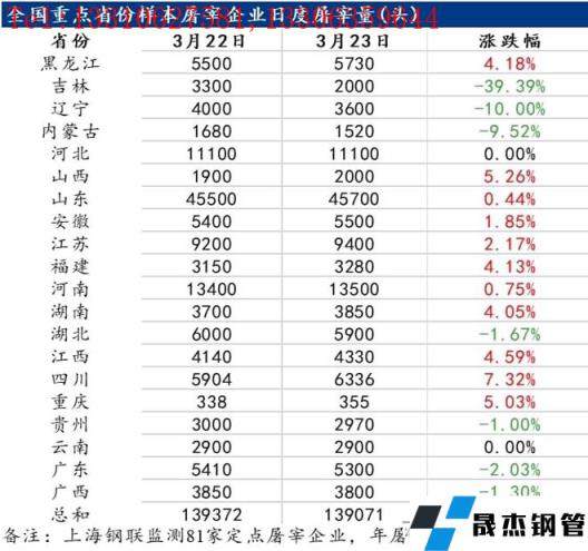 截至3月23號(hào),國(guó)內(nèi)重點(diǎn)屠宰企業(yè)開(kāi)工率為26.52%,環(huán)比昨日小幅下降,未來(lái)幾日的封禁對(duì)于屠宰企業(yè)開(kāi)工有著明顯的利空,預(yù)計(jì)未來(lái)幾日,部分北方地區(qū)屠企開(kāi)工率或繼續(xù)下降,那就意味著他們的利潤(rùn)將被繼續(xù)擠壓。