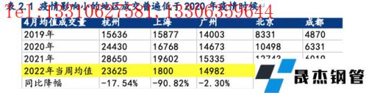 自3月中旬以來,受上海、江蘇、山東等地疫情封控影響,下游工地施工節(jié)奏大幅放緩。華東地區(qū)螺紋鋼表觀消費量3月中旬為156萬噸/周,4月中旬僅119萬噸/周,下降了23%。若長三角疫情在5月上旬得到控制,復工復產(chǎn)逐步有序恢復。我們根據(jù)歷史經(jīng)驗和今年的需求特點,推演認為螺紋周均表需(鋼聯(lián)口徑)有望達到340-350萬噸/周。而其他受疫情影響較小的地區(qū),社庫去庫速率緩慢,成交低于2020年同期,實際厚壁無縫鋼管需求不容樂觀,疫情結束后這些地區(qū)為需求帶來的增量有限。