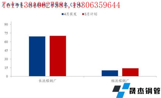 1、5月份廣西地區(qū)建筑材省內(nèi)長流程無縫厚壁鋼管廠家計(jì)劃供應(yīng)量共計(jì)70.3萬噸,環(huán)比增加1.2萬噸,增幅為1.74%;短流程無縫厚壁鋼管廠家到貨量為13.9萬噸,環(huán)比增加3.5萬噸,增幅為33.65%。