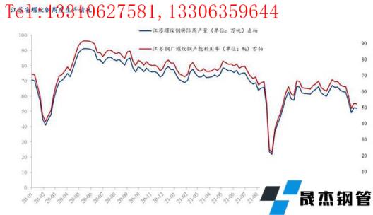 圖二:江蘇省螺紋鋼產(chǎn)量及開工走勢(shì)圖