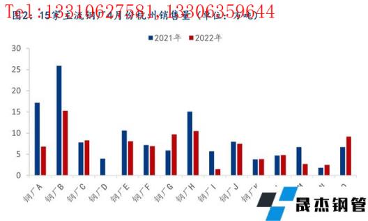 2、15家主導無縫厚壁鋼管廠家4月在杭銷售量為97.7萬噸,較發(fā)貨量相比增加4.4萬噸。清明小長假過后,杭州市場下游需求不斷釋放,上半個月碼頭出庫量逐步改善,不斷朝去年同期水平靠近。但下半個月受杭州疫情影響,部分區(qū)域工地停工、碼頭停止作業(yè),整體需求下滑明顯,全月需求依然低于市場預期水平。