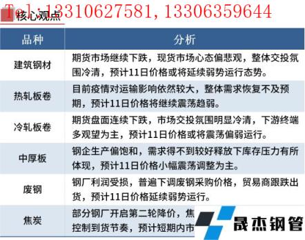熱軋板卷:5月10日,全國24個主要城市4.75mm熱軋板卷均價5012元/噸,較上個交易日下跌55元/噸。受昨日夜盤影響,現(xiàn)貨市場早盤開始,貿(mào)易商悲觀情緒濃厚,午后盤面尾盤有小幅拉升,華東區(qū)域現(xiàn)貨價格也隨之小幅回調(diào),但成交寥寥無幾。整體來看,國內(nèi)目前疫情對運輸影響依然較大,華東區(qū)域解封仍需一段時間,整體需求恢復(fù)不及預(yù)期,預(yù)計11日熱卷現(xiàn)貨市場價格將繼續(xù)震蕩趨弱。