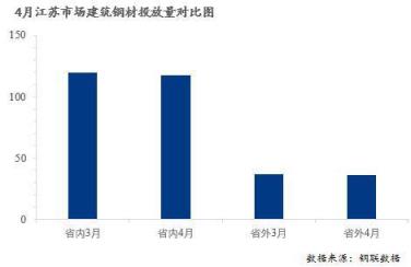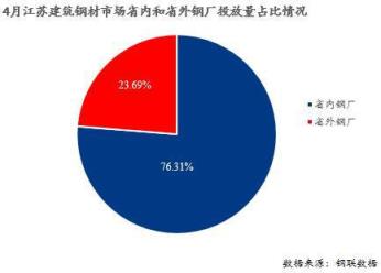 由上圖可見,4月江蘇省內(nèi)無縫厚壁鋼管廠家在江蘇省13個(gè)城市投放建筑厚壁無縫鋼管量占總投放量的76.31%,省外無縫厚壁鋼管廠家占江蘇省總投放量的23.69%。同時(shí),從調(diào)研數(shù)據(jù)來看,4月江蘇市場(chǎng)建筑厚壁無縫鋼管實(shí)際投放總量較3月減少4.36萬噸萬噸,降幅約2.76%。