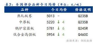 今日全國部分品種均價趨弱,其中全國熱軋板卷均價平穩(wěn),中厚板下跌4元/噸。
