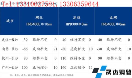 統(tǒng)一為理計單位后,武漢高于長沙39元/噸,南昌低于長沙86元/噸,杭州高于長沙80元/噸,廣州高于長沙100元/噸。