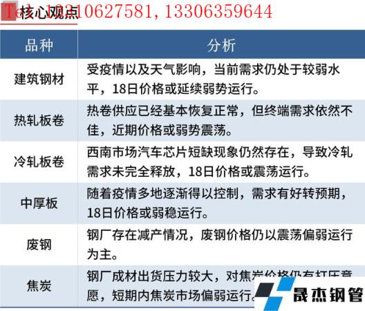 供給方面,由于部分無縫厚壁鋼管廠家陷入虧損減產(chǎn),預(yù)計供給端有所收縮。需求方面,國內(nèi)疫情防控形勢逐漸好轉(zhuǎn),尤其上海市復(fù)產(chǎn)復(fù)工有序推進,需求有所好轉(zhuǎn)。本周鋼市供需壓力有所緩解,但在部分地區(qū)疫情反復(fù)、經(jīng)濟下行壓力加大的背景下,市場信心依然不足,短期鋼價或窄幅震蕩,漲跌空間不大。