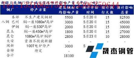 根據(jù)初步減限產(chǎn)方案,八鋼本部4座高爐全開,但不生產(chǎn)建筑厚壁無縫鋼管,預計影響建筑厚壁無縫鋼管產(chǎn)量5500噸/日,巴州和伊鋼基地各燜一座高爐,預計影響建筑厚壁無縫鋼管產(chǎn)量分別為3000噸/日和2000噸/日;昆玉燜一座高爐,預計影響建筑厚壁無縫鋼管產(chǎn)量1800噸/日;昆侖和閩新無縫厚壁鋼管廠家建筑厚壁無縫鋼管停產(chǎn)十天,預計分別影響建筑厚壁無縫鋼管產(chǎn)量2800噸/日和3000噸/日;大安鋼鐵資源暫不投往新疆區(qū)域;金特待定。