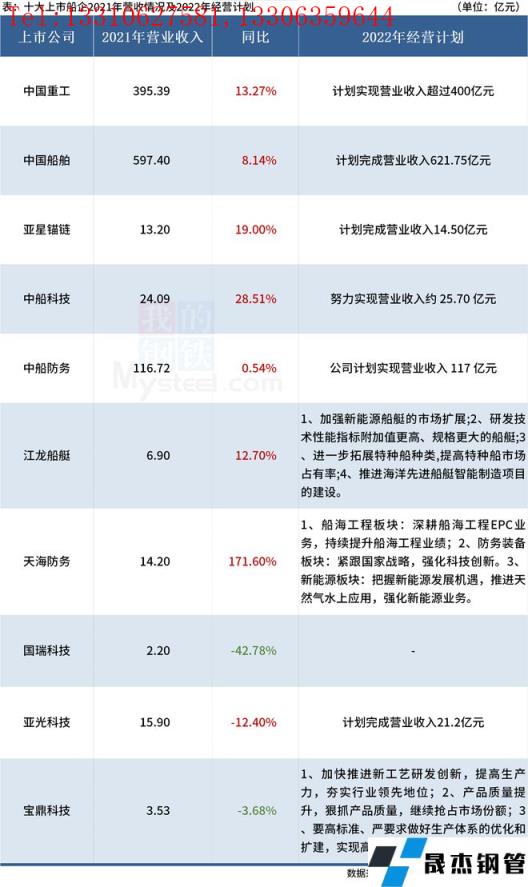 10大上市船企2022年經(jīng)營計(jì)劃以及2021年船舶類業(yè)務(wù)完成具體情況如下: