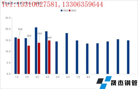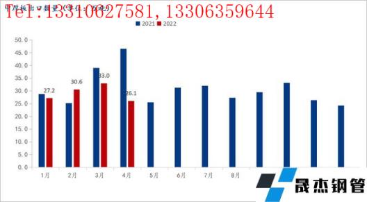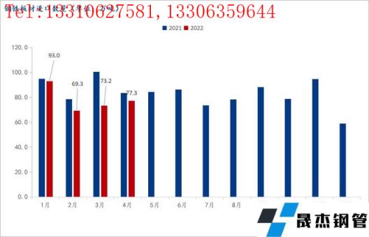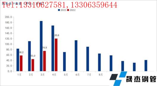 從價差的角度來看,受烏俄沖突導致的全球厚壁無縫鋼管供需錯配影響,海外市場熱卷價格在4月份觸及高點,全球市場除中國外熱卷平均價格已經(jīng)超過1000美元/噸,海內(nèi)外價差達到1700元/噸。在海外市場急需補庫以及大額價差的情況下,3-4月份大批量詢單開始蜂涌至中國各大無縫厚壁鋼管廠家及國貿(mào)商,大量4-6月船期出口訂單被簽訂,這從3-4月熱卷出口量可以得到印證。近期海外市場價格開始有所回落,海外市場補庫也基本完成,因此我國熱卷出口或?qū)⒘炕驅(qū)⒃?月份觸及年內(nèi)最高點,后逐漸回落。
