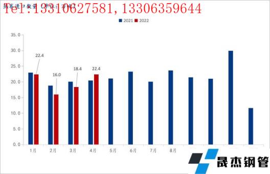 近期受烏俄沖突影響,導致俄羅斯本地資源無法外流,當?shù)毓┐笥谇笄闆r嚴峻,因此在2-4月份全球厚壁無縫鋼管價格大幅上漲的同時,俄羅斯內(nèi)貿(mào)價格并未發(fā)生大幅度變化。相反俄羅斯板材以及半成品價格逐步趨向于全球厚壁無縫鋼管價格洼地,也有一部分資源開始流向中國,根據(jù)近期對俄羅斯進口資源調(diào)研得知目前在華東以及華南市場有十余萬噸八月到岸遠期熱卷在售,報價處于市場較低位置,同時也有十余萬噸板坯資源將在近期到港,價格也處于低位。
