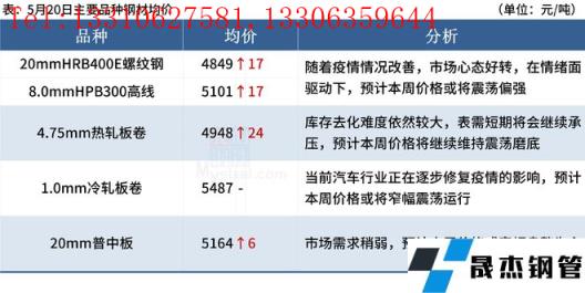 ◎ 中天5月下旬建材調(diào)價:螺紋鋼下調(diào)100元/噸,HRB400材質(zhì)Φ16-25mm規(guī)格執(zhí)行價格5000元/噸;高線平穩(wěn),HPB300材質(zhì)Φ6.5-12mm規(guī)格執(zhí)行價格5300元/噸;盤螺平穩(wěn),HRB400材質(zhì)Φ8-12mm規(guī)格執(zhí)行價格5300元/噸;帶鋼格下調(diào)100元/噸,ZT03材質(zhì)Φ2.5mm規(guī)格執(zhí)行價格5100元/噸。