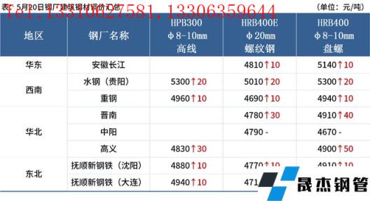 ◎ 沙鋼5月下旬建材調(diào)價:螺紋鋼平穩(wěn),HRB400Ф16-25mm螺紋出廠價格為5350元/噸;高線平穩(wěn),HPB300Ф6-10mm普碳高線執(zhí)行價格5310元/噸;盤螺平穩(wěn),HRB400Ф8-10mm盤螺執(zhí)行價格5400元/噸。