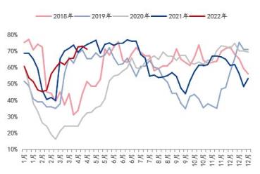 結(jié)合相應的產(chǎn)能利用率來看,截止至2022年4月底,湖北省螺紋鋼產(chǎn)能利用率約在71.22%,高于近5年的每年平均水平,且從走勢圖上看,基本處于歷年產(chǎn)能釋放值的高位運行;而線盤產(chǎn)能利用率約在67.54%,尚且低于平均值水平,從走勢圖上看,并未達到峰值水平在釋放。由此看來,隨著新增產(chǎn)能的釋放,若產(chǎn)能利用率維持在相對高位運行,將一定程度上在供應方面做了疊加效應。當然,供應能力的單方面增加并未能說明價格一定會出現(xiàn)偏低運行的表現(xiàn),因此需結(jié)合需求的表現(xiàn)來驗證一下。