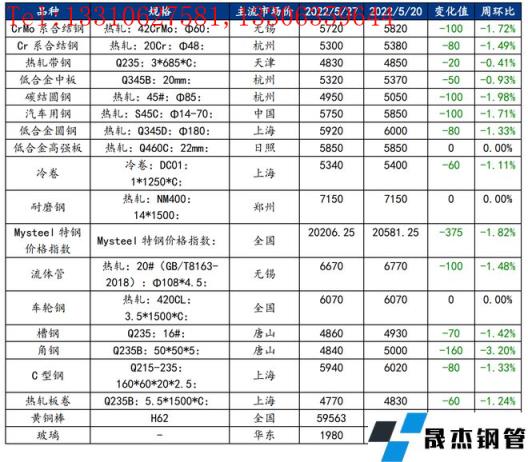 截止2022年5月27日,各原材料當(dāng)日即時(shí)價(jià)格以及價(jià)格周環(huán)比情況如下:
