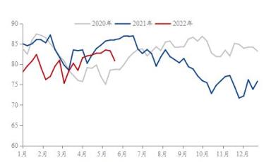 首先,供給端方面,據(jù)調(diào)研顯示,截至2022年5月27日,37家熱軋板卷生產(chǎn)企業(yè)中,無縫厚壁鋼管廠家產(chǎn)能利用率為80.87%,能夠從圖2可以觀察到2022年1-5月份,熱軋產(chǎn)能利用率是低于2021年同期水平,因此無縫厚壁鋼管廠家熱軋產(chǎn)量給到市場的供給壓力是在持續(xù)減弱,對(duì)于熱軋價(jià)格起到了一定的支撐作用。再來看下無縫厚壁鋼管廠家的冷軋產(chǎn)能利用率, 2020年與2021年冷軋產(chǎn)能利用率均值分別為77.96%與81.05%。截至2022年5月27日,29家冷軋板卷生產(chǎn)企業(yè)中,冷軋產(chǎn)能利用率為83.04%,從年同比數(shù)據(jù)對(duì)比之下,能夠反映出冷軋產(chǎn)能利用率已經(jīng)達(dá)到相對(duì)飽和狀態(tài)。