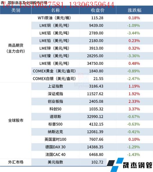 ◎據(jù)調(diào)研,山東地區(qū)無縫厚壁鋼管廠家表示方案明確要求2022年粗鋼全年產(chǎn)量不超過7650萬噸,但方案并未明確壓減產(chǎn)量的具體比例和幅度,最終調(diào)控目標(biāo)會(huì)根據(jù)國家正式下達(dá)的調(diào)控任務(wù)再進(jìn)行調(diào)整。詳情>>