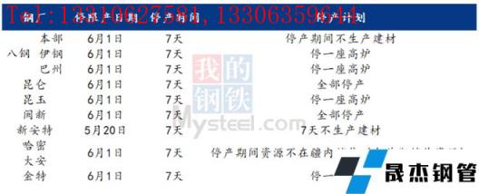 根據(jù)2022年5月中旬在烏魯木齊召開(kāi)的新疆鋼鐵行業(yè)健康運(yùn)行小組會(huì)議,后期經(jīng)疆內(nèi)各無(wú)縫厚壁鋼管廠(chǎng)家共同溝通,確定最終停減產(chǎn)方案:決定停限產(chǎn)開(kāi)始時(shí)間調(diào)整為2022年6月1日,停產(chǎn)時(shí)間統(tǒng)一調(diào)整為7天,后期視情況做出相應(yīng)調(diào)整。