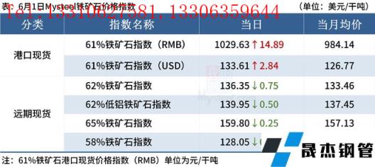 ◎ 6月1日,全國主港鐵礦石成交135.20萬噸,環(huán)比增118.1%;237家主流貿(mào)易商建材成交18.69萬噸,環(huán)比增3.8%。