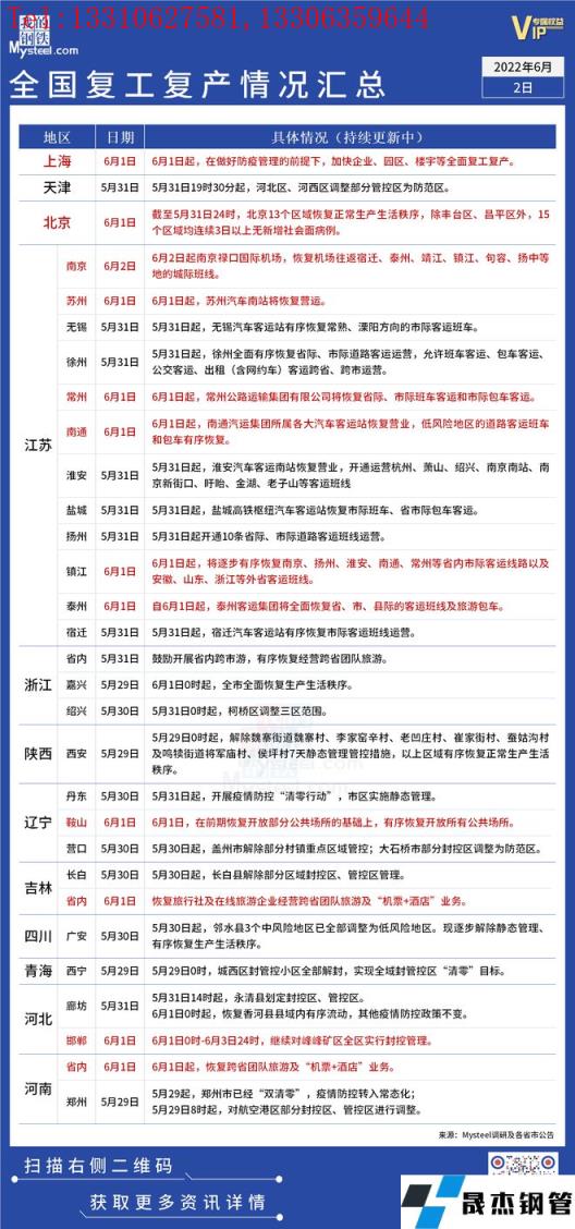 疫情影響丨全國停工復工情況匯總(6月1日)