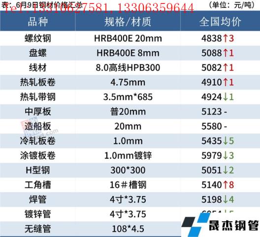 建筑厚壁無(wú)縫鋼管:6月9日,全國(guó)31個(gè)主要城市20mm三級(jí)抗震螺紋鋼均價(jià)4838元/噸,較上個(gè)交易日漲3元/噸。產(chǎn)業(yè)數(shù)據(jù)方面,本周螺紋鋼產(chǎn)量小幅增加,庫(kù)存方面,雖然廠庫(kù)下降,但社庫(kù)出現(xiàn)回升,同時(shí)在雨季影響下,需求端整體低迷。短期來(lái)看,目前市場(chǎng)需求恢復(fù)狀況不及預(yù)期,南方汛期疊加高考日影響,下游需求整體低迷,且投機(jī)性需求較差。因此短期在弱基本面的壓力下,預(yù)計(jì)10日國(guó)內(nèi)建筑厚壁無(wú)縫鋼管價(jià)格或?qū)⒗^續(xù)窄幅震蕩為主。