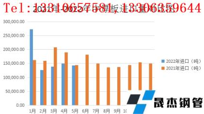圖4 中厚板產(chǎn)品2021-2022年度進(jìn)口量對比圖
