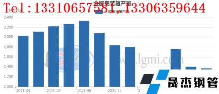 國內(nèi)下游產(chǎn)品供應(yīng)分品種來看,5月份國內(nèi)金屬集裝箱產(chǎn)量為1365萬立方米,環(huán)比4月份減產(chǎn)約33.4萬立方米。同比21年同期下降約658.1萬立方米。