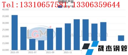 5月份國內(nèi)挖掘機(jī)產(chǎn)量為20937臺,環(huán)比4月份減少約6956臺。同比21年同期減少約15165臺。