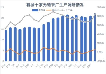圖3 2022年上半年全國無縫管總庫存及開工率