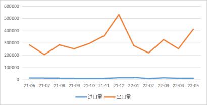 圖7 2022年上半年我國無縫管出口量、進(jìn)口量走勢圖