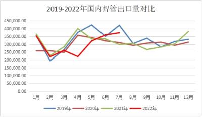 圖一 2019-2022年我國焊管出口量對比